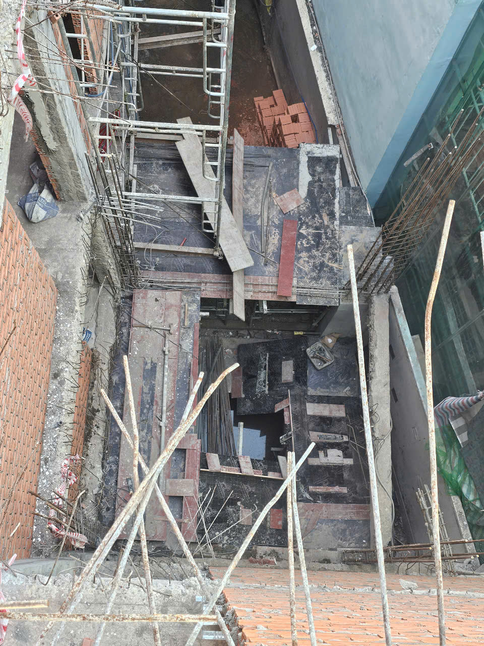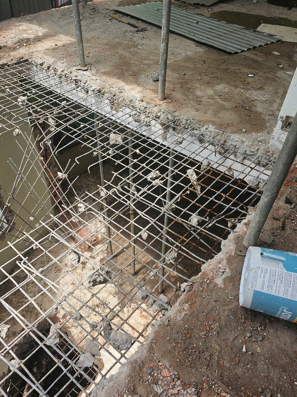 Công tác khoan cấy và ván khuôn, bê tông, cốt thép cầu thang mới, và giá lại ô sàn cũ các tầng